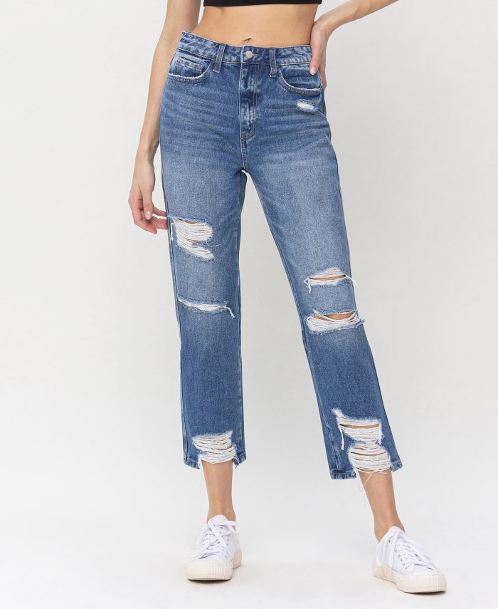 Lolita Super High Rise Straight Jeans are crafted from premium, non stretch denim for a durable, timeless feel. These jeans feature a super high rise waist and cropped length for a flattering silhouette.